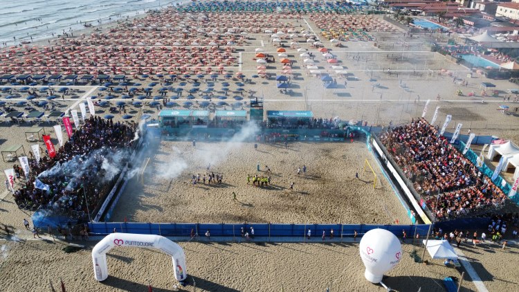 Viareggio gioca la partita perfetta e non lascia scampo al Catania battuto per 9-2. I ragazzi di mister Corosiniti coronano il sogno dello Scudetto e lo fanno alla loro maniera, con grinta, classe e carattere. Uno scarto di reti così ampio in una finale Scudetto non si era mai visto. Una partita che ha celebrato la qualità del Beach Soccer FIGC-Lega Nazionale Dilettanti. Davanti ad un pubblico favoloso che ha riempito il “Matteo Valenti” Beach Stadium di Viareggio i bianconeri hanno dominato grazie ad una miscela perfetta di giovani italiani e stranieri di caratura internazionale. I ragazzi di mister Corosiniti conquistano il secondo Scudetto della loro storia ripetendo l’impresa del 2016. E’ il sesto trofeo per Viareggio che riscatta la finale persa nella scorsa stagione e torna ad alzare un trofeo dopo la Supercoppa 2018. Viareggio ha preso subito in mano il match ed in un crescendo rossiniano con il passare dei minuti ha scavato un solco incolmabile tra sé e gli etnei. La bellezza e gli autori dei gol rappresentano il meglio del beach soccer, fendenti al volo, rovesciate e giocate di classe di giovani che si stanno affermando anche in Nazionale. Una firma per il classe 2001 Bertacca, sei in Campionato per lui eletto miglior giocatore della Serie A 2023. Un sigillo anche per Fazzini (2001), quinta rete in A per lui. L’esperto portiere della Nazionale Carpita ha scelto la partita più importante per segnare una doppietta ribadendo ancora una volta quanto siano importanti anche le qualità balistiche del portiere in questo sport. Certo la differenza l’hanno fatta anche i Campioni stranieri, il nazionale lusitano Leo Martins (un centro, 13 in Campionato) e quello brasiliano Ze Lucas (doppietta, 14 nella Serie Aon). Ha vinto la squadra più forte di testa e forse la più spettacolare ma entrambe le formazioni hanno colorato la sfida con giocate d’alta classe a velocità vertiginose.