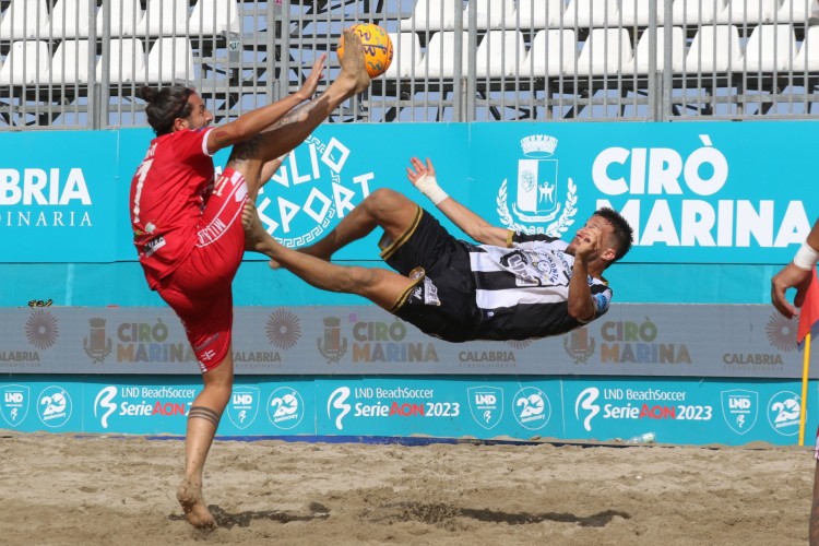 L’8^ giornata della Poule Scudetto della Serie Aon giocata sulla spiaggia di Torrenova di Cirò Marina (Kr) è stata la perfetta fusione tra estetica e cinismo. Quattro partite entusiasmanti giocate a ritmi folli nonostante il caldo record, quattro sfide che hanno incarnato al meglio tutte le qualità del Beach Soccer FIGC-Lega Nazionale Dilettanti.