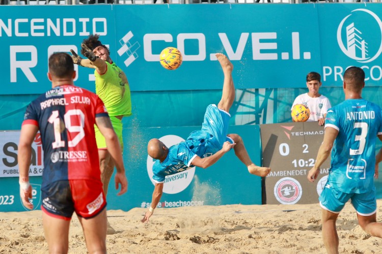 Catania SSD-Farmaè Viareggio 6-5 det Un successo tutto cuore e coraggio quello del Catania SSD che dopo due tempi era sotto di tre reti. Negli ultimi 12’ gli etnei hanno ribaltato le sorti della gara portandola all’extra time deciso da un graffio dello svizzero Ott certificando l’efficacia della legge dell’ex. E’ tutta qui è la bellezza del Campionato LND. Il Viareggio che aveva strapazzato i campioni d’Italia del Pisa ha subito la rimonta da una squadra costruita da poco appena soverchiata dal Napoli. Nel Catania un giocatore su tutti si è stagliato, il brasiliano Eudin che dopo aver vinto tutto con la Samb e l’altra squadra di Catania ha ancora fame di vittorie ed oggi l’ha dimostrato con un poker di reti che lo porta in vetta alla classifica marcatori. Il nazionale elvetico Ott ci ha messo del suo, non è un caso se ha vinto un europeo e tanti trofei con i club di tutto il mondo. Viareggio ha sfoggiato la solita classe del brasiliano Ze Lucas (doppietta) e del portoghese Leo Martins (un gol). La sorpresa è il ritorno ad alti livelli di Petracci che ha scosso due volte la rete per la prima volta. Ma non è bastato.