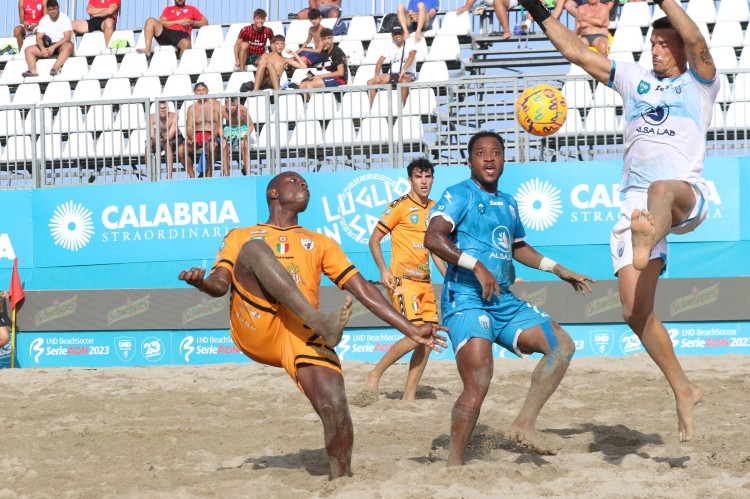 Sul litorale Torrenova di Cirò Marina (Kr) è andata in archivio anche la 7^ giornata della Poule Scudetto - Serie Aon. Uno stadio pieno di calore, variopinto, stracolmo di gente ha fatto da sfondo alle partite del Beach Soccer FIGC-Lega Nazionale Dilettanti, l’unico, quello ufficiale che da vent’anni anima ogni estate. Il pubblico ha assistito a quattro partite illuminate dalle acrobazie e dai colpi ad effetto dei beachers.