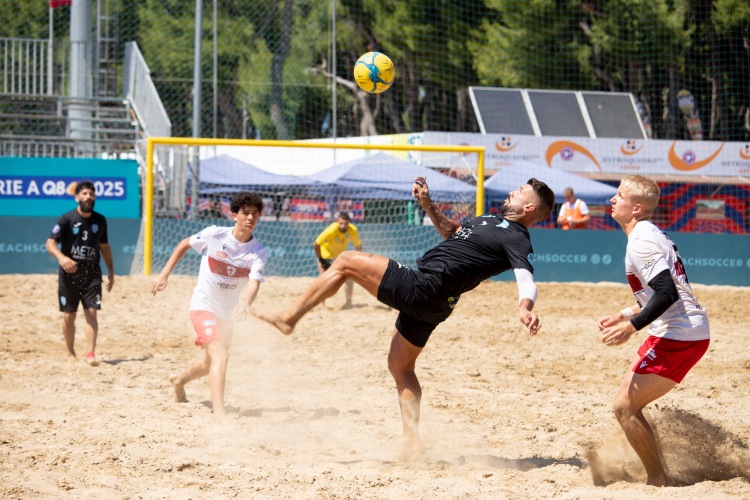 Un’altra partita avvincente e densa di emozioni ha acceso la sabbia della Beach Arena di San Benedetto nella Coppa Italia Q8 2025. In palio c’era un posto nella semifinale per il 5°/6° posto, e a spuntarla è stato il Terracina Beach Soccer, che ha superato il Milano con il punteggio finale di 4-3. Una gara equilibrata fin dalle prime battute, tra due formazioni storiche del movimento italiano. Subito un colpo di scena: al 1’ del primo tempo Savarese fallisce un calcio di rigore che avrebbe potuto indirizzare subito la gara. Il match si sviluppa poi con un botta e risposta continuo: Pintado e Ghilarducci da una parte, Ramy e Carlos Da Silva dall’altra, mantengono viva la tensione sul punteggio di 3-3. A decidere la sfida è un episodio sfortunato: al 4’ dell’ultima frazione di gioco arriva l’autorete di Piu, che regala il vantaggio decisivo ai pontini. Un episodio amaro per Milano, che fino a quel momento aveva tenuto testa con grande determinazione. Con questo successo, il Terracina BS si qualifica alla semifinale per il 5°/6° posto, mentre il Milano BS giocherà per i piazzamenti dal 7° al 10°.