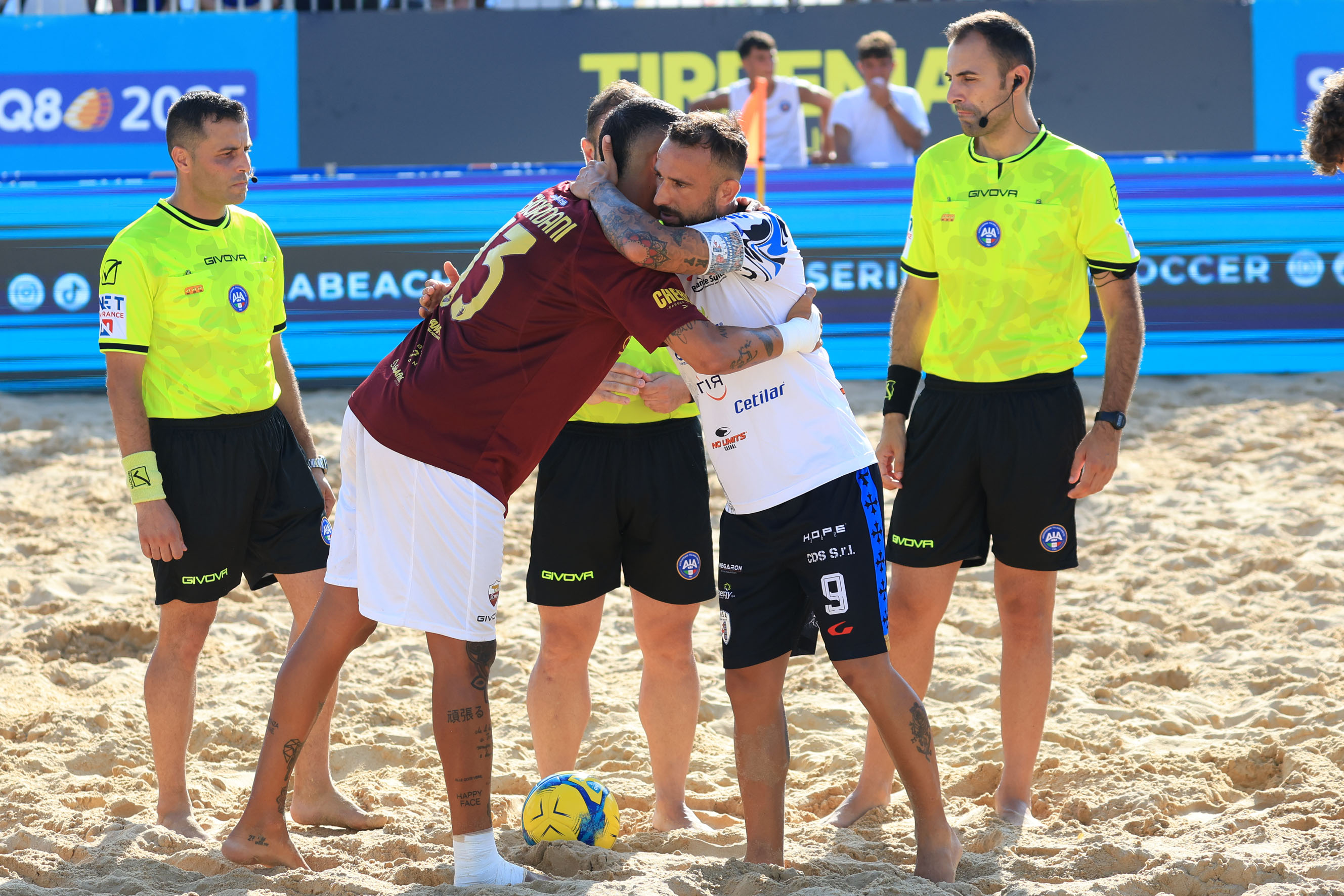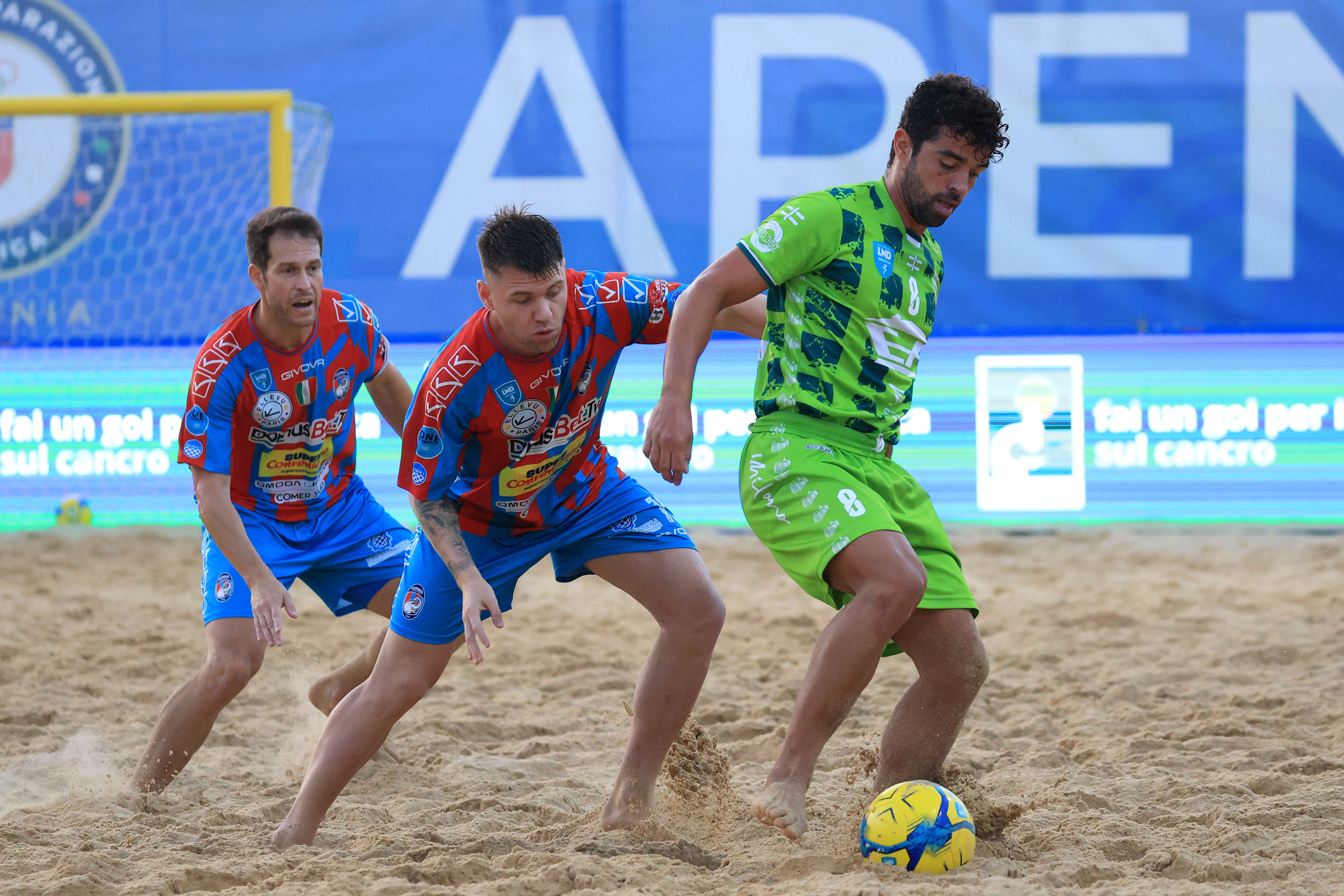 Il Cagliari si fa riprendere cinque volte, ma la spunta all’ultimo respiro grazie alla zampata decisiva dell’eterno Palmacci. Sardi che chiudono il primo tempo in doppio vantaggio grazie alle reti di Palmacci e Gemignani, poi si accende Chicky per il We Beach Catania con una doppietta intervallata dal gran gol in rovesciata di Von. Nell’ultima frazione Duarte, ancora Von e Lucao si alternano in una rincorsa a suon di gol risolta dal nuovo acquisto rossoblu.