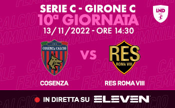 Tra le partite in programma Cosenza-Res Roma sarà trasmessa in diretta streaming sul canale ELEVEN della LND: http://bit.ly/3Emj4TE