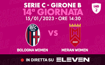Tra le partite in programma Bologna-Meran sarà trasmessa in diretta streaming sul canale ELEVEN della LND: https://elevensports.com/view/event/clcotmx8nt8m40jfpmjo9730n?src=CPT_EL