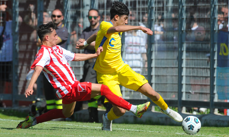 La finale di Rieti è un tripudio di colori e passione, grazie alla folta rappresentanza dei tifosi termali e di un centinaio di quelli di fede salsese. Avvio frizzante per il Barletta che conquista due calci d’angolo nel giro di pochi minuti ma la difesa del Salsomaggiore respinge senza affanni. Al 10’ si fa vedere il Salso con Berti che allarga a destra per Storchi, cross rasoterra ma Tucci è pronto. Passano dieci minuti e la squadra di mister Farina passa in vantaggio sugli sviluppi di un calcio d’angolo. Pallone scodellato nel cuore dell’area salsese dove Morra aggancia e ci prova una prima volta ma Spanu respinge d’istinto. Il numero uno gialloblù deve però arrendersi sulla successiva rovesciata dello stesso Morra. La squadra di mister Cristiani ci prova al 33’ su calcio di punizione ma la conclusione di Prandi finisce di poco alta sulla traversa. La seconda frazione si apre con un brutto trauma distorsivo al ginocchio per il terzino sinistro emiliano Compiani che sarà costretto a uscire. Il Salso spinge e pochi minuti più tardi ha una buona chance con Pellegrini ma Tucci c’è. Ancora un penalty, questa volta a favore del Barletta al 23’. Lo calcia il nuovo entrato Viscovich che scavalca la barriera ma la traversa dice no. Due minuti ed il Salso trova il pareggio con Pellegrini: il numero 18 sfrutta un buco tra le maglie della difesa avversaria e, a tu per tu con Tucci, gonfia la rete con un preciso rasoterra. Gara aperta e bellissima che al 40’ fa registrare un’occasionissima per i biancorossi: Pignataro addomestica una buona palla e, spalle rivolte alla porta, appoggia a Lavopa che colpisce la base piena del palo. Risponde il salso in contropiede ma Nsingi non sfrutta a dovere un ottimo suggerimento di Habachi e manda incredibilmente alto. I 4’ di recupero non bastano e si va ai supplementari. Due tempi tiratissimi con occasioni su entrambi i fronti ma ad esultare insieme ai tantissimi tifosi è stato il Barletta. Sugli sviluppi dell’undicesimo corner a favore dei pugliesi, battuto da Viscovich, Telera spizza di testa per il subentrato Visani che, come in semifinale contro l’Ossese, è ancora decisivo e segna di rapina il gol del nuovo e definitivo vantaggio dei pugliesi.