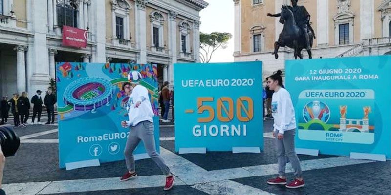 È iniziato a Roma il countdown verso UEFA EURO 2020, il primo Campionato Europeo itinerante della storia che prenderà il via tra 500 giorni, il 12 giugno 2020, allo Stadio Olimpico. Per accompagnare il conto alla rovescia due dei freestyler italiani più famosi al mondo, Swann Ritossa e Anastasia Bagaglini della ‘Fast Foot crew’, si esibiranno oggi in alcuni dei luoghi simbolo della Capitale.