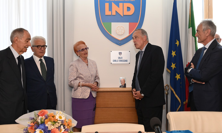 Parole che hanno trovato riscontro nell’intervento del Presidente FIGC Gabriele Gravina: “Ringrazio Abete, il Consiglio Direttivo e tutta la LND per aver compiuto un gesto così importante e significativo. Trovarsi tutti insieme qui con la famiglia di Tavecchio ci da forza, ci aiuta a trovare un senso profondo nella condivisione di un percorso comune. L’intitolazione di questa sala a Carlo ci sprona ad assumerci maggiori responsabilità, con serietà, ricordandoci che il calcio non è di nostra proprietà ma ci è stato consegnato momentaneamente per ridarlo migliore alle nuove generazioni”.