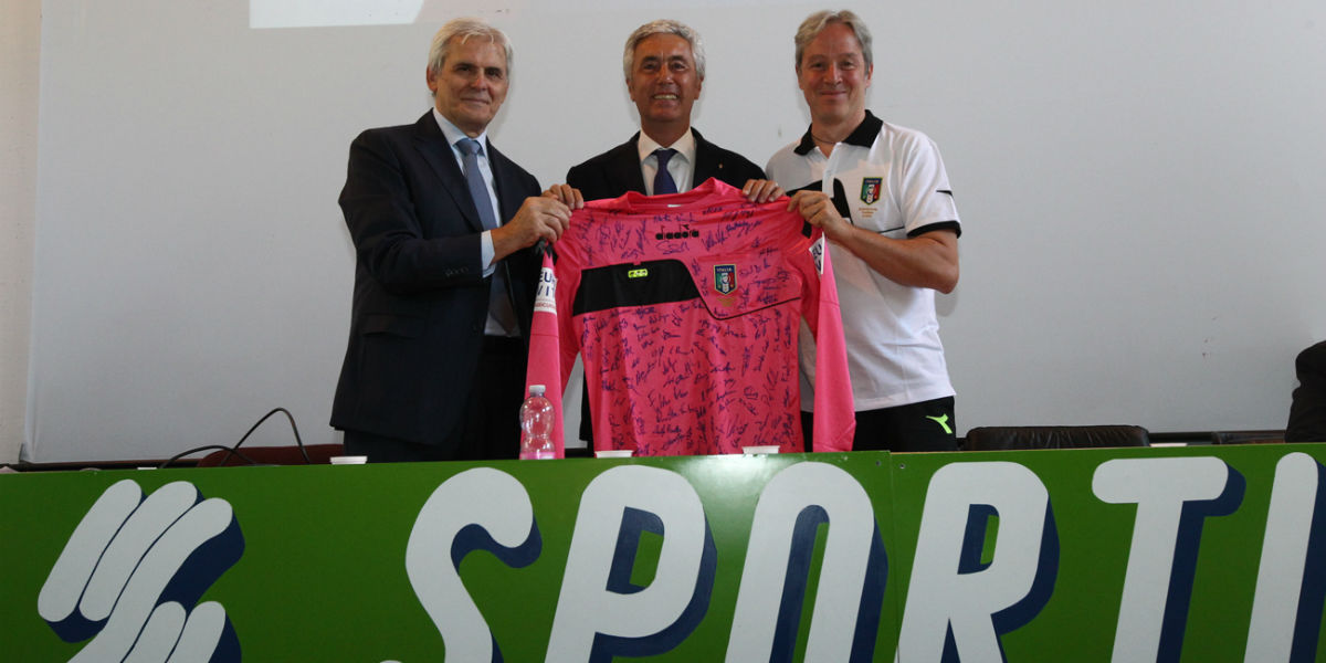 Il Presidente della Lega Nazionale Dilettanti Cosimo Sibilia insieme al Coordinatore del Consiglio del Dipartimento Interregionale Luigi Barbiero ed al segretario Mauro De Angelis hanno partecipato a Sportilia al Raduno della CAN D per salutare il nuovo Responsabile della Commissione Matteo Trefoloni. Un momento di confronto importante, a cui ha partecipato anche il Presidente della AIA Marcello Nicchi, che ha consolidato il rapporto tra la LND e l'AIA. "Ringrazio gli arbitri per la bella accoglienza ed in particolare il Presidente Nicchi per l'attestato di stima nei nostri confronti. Mi ha fatto piacere che le novità regolamentari introdotte recentemente, i numeri di maglia personalizzati, le cinque sostituzioni e l'iscrizione gratuita in terza categoria, siano state apprezzate anche dai vertici dell'AIA - ha sottolineato Cosimo Sibilia. "La nostra presenza al raduno vuole testimoniare la vicinanza della Lega Nazionale Dilettanti ed in particolare quella del Dipartimento Interregionale alla componente arbitrale, tessera fondamentale nel mosaico del sistema calcio. Sono certo che insieme miglioreremo un campionato già competitivo come quello della Serie D".