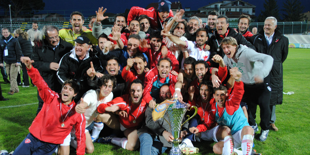Messaggio chiaro fin dai primi minuti, Perugia (in maglia bianca) e Turris (in completo rosso) vogliono questa Coppa senza badare troppo ai rischi. Ritmi alti che accendono subito la gara ripagando la passione dei tanti tifosi accorsi al Biondi di Lanciano. Il primo brivido forte arriva al 15' con Russo che sfiora la traversa con una punizione in posizione centrale dal limite dell'area. Risponde il grifo con D'Ambrosio che di testa lambisce il montante alla sinistra di Prete. Dopo le prime sfuriate la partita cala d'intensità e si arriva al 25' con l'equilibrio che non si spezza. Poco dopo la mezz'ora di gioco il Perugia va vicino al vantaggio in due occasioni, Bartolini di testa colpisce il palo, D'Ambrosio su punizione impegna severamente Prete in presa bassa. I ragazzi di Battistini sentono che è il momento decisivo del primo tempo e continuano a pressare una Turris in leggera difficoltà dopo un buon inizio. I corallini rispondo con un calcio di punizione di Polverino che sfiora il palo alla destra di Ripa. Al 42' su calcio da fermo il Perugia passa, Corallo batte un calcio di punizione defilato sulla sinistra, Russo spizza di testa ingannando Prete che può solo toccare la sfera. Grifo in vantaggio al terzo affondo. La Turris non ha tempo per replicare, l'arbitro fischia la fine del primo tempo. La ripresa si apre con i corallini decisi a trovare il gol del pari, Polverino nello spazio di pochi minuti con tre calci da fermo spaventa il Perugia. Nonostante il risultato e la tanta corsa in campo la partita si gioca a strappi, sono gli episodi ad incidere più del gioco delle squadre che sembrano sentire l'importanza della posta in palio. Passano i minuti e la Turris si sbilancia così il Perugia cerca di approfittare degli spazi invitanti che si aprono. Bartolini si fa maledire dai propri tifosi sciupando due occasioni in contropiede, al 22' trovatosi a tu per tu con Prete riesce a saltarlo ma da posizione defilata non trova la porta, pochi minuti dopo solo sempre davanti a Prete spara alto. La Turris non si abbatte e capitan Russo suona la carica dei suoi con due girate in area che mettono i brividi agli umbri. Proprio allo scadere lo scatenato Russo viene abbattuto in area, l'arbitro indica il dischetto di rigore ma l'assistente di linea segnala il fuorigioco dell'attaccante campano. E' l'ultimo sussulto della Turris, il Perugia capitalizza l'unica rete segnata e conquista la Coppa.
