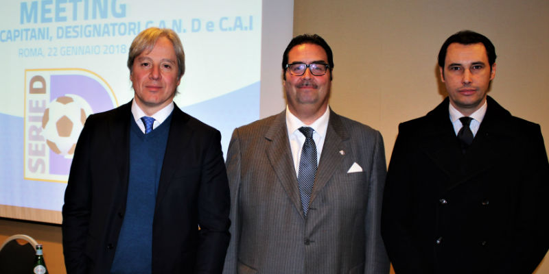 Si è svolta oggi, lunedì 22 gennaio 2018, presso l'NH Hotels di Via dei Gracchi a Roma, l’importante riunione dedicata al campionato di Serie D promossa dal Dipartimento Interregionale della Lega Nazionale Dilettanti tra gli allenatori responsabili della prima squadra, i capitani, il Designatore della CAN/D Matteo Trefoloni, accompagnato dai componenti Domenico Celi ed Emilio Ostinelli ed il Designatore CAI Andrea Gervasoni. Un appuntamento, il quinto consecutivo, divenuto ormai una costruttiva consuetudine per mettere a sistema tutti gli “ingranaggi” del massimo campionato dilettantistico, al fine di promuovere un costante confronto tra la parte tecnico/agonistica e gli Organi Tecnici arbitrali. L’occasione, come da programma, è stata favorevole per l’approfondimento delle circolari AIA di recente pubblicazione e per un aggiornamento generale su quanto ruota intorno al campionato; obiettivo dichiarato da tutte le componenti, proseguire nel miglioramento delle dinamiche inerenti la categoria da ogni punto di vista. Presenti il Coordinatore ed il Segretario del Dipartimento Interregionale Luigi Barbiero e Mauro De Angelis, insieme ai Consiglieri dell'Interregionale Ivano Becci,Massimo Caldaroni,Pietro Bertapelle, Giuseppe Dello Iacono,Giacomo Diciannove, Sergio Gardellini e Maria Teresa Montaguti. Come nelle precedenti occasioni la sala del meeting è stata affollata da più di 200 partecipanti a conferma dell’alto grado di maturità raggiunto da tutti i protagonisti che animano il campionato di Serie D con professionalità, partecipazione e coinvolgimento. Presenti in sala anche il Tecnico della Rappresentativa della Serie D, e della Rappresentativa Nazionale LND Under 15, Augusto Gentilini e Francesco Statuto, tecnico delle selezioni Under 16 e 17 della Lega Nazionale Dilettanti.