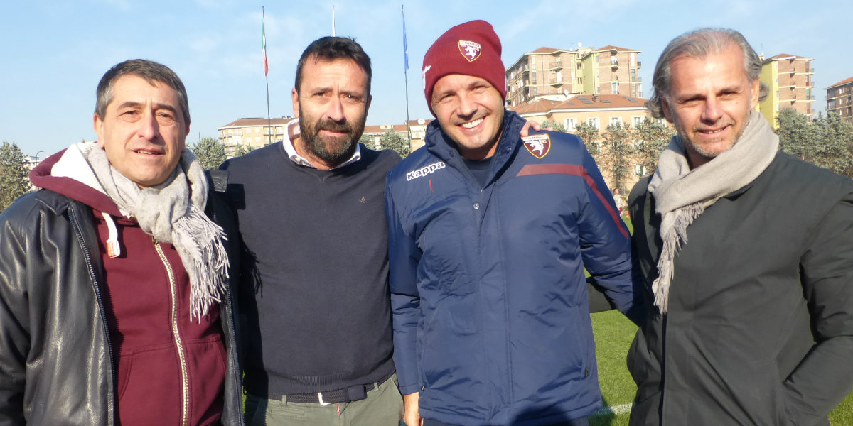 Da sinistra: Giacomo Germanetti (presidente Bra), Fabrizio Daidola (allenatore Bra), Siniša Mihajlović, Marco Moretti (vice-allenatore Bra).