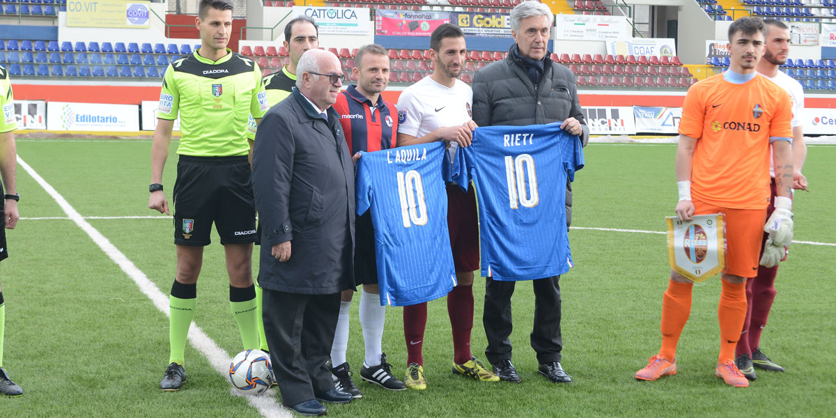 “Federcalcio e Lega Nazionale Dilettanti insieme per i terremotati” è molto di più di uno slogan, piuttosto un impegno concreto per la ripresa dell’attività sportiva nelle aree del Centro Italia colpite dal sisma. Lo aveva dichiarato il neo presidente della LND Cosimo Sibilia subito l’elezione di sabato scorso, “la mia prima uscita pubblica sarà tra i terremotati”, e l’invito è stato subito raccolto dal numero uno del calcio italiano Carlo Tavecchio che, dopo aver visitato Visso ed i paesi limitrofi prima di Natale, non ha voluto far mancare la sua vicinanza anche alle zone dell’aquilano e del reatino. Quale migliore occasione dunque del derby di alta classifica del girone G della Serie D L’Aquila-Rieti (terminato 1-0 per i padroni di casa grazie alla rete di Russo) per annunciare che FIGC e LND cammineranno fianco a fianco per l’attivazione di un progetto da sviluppare insieme al Commissario per la ricostruzione Errani e al Ministro dello Sport Lotti. L’obiettivo è riportare alla normalità l’attività delle piccole società, delle scuole calcio e delle decine di squadre costrette a fermarsi a causa degli eventi sismici. La contribuzione del mondo del calcio (500 mila della FIGC e 240 della LND), cui si aggiungerà quasi sicuramente anche la solidarietà concreta di UEFA e FIFA, è finalizzata a contrastare l’emergenza e consentire, tra le altre cose, l’acquisto di attrezzature sportive e di minibus per il trasporto dei bambini nel primo impianto disponibile. Prima di assistere alla gara sulle tribune dello stadio Gran Sasso d’Italia-Italo Acconcia, Tavecchio e Sibilia, accompagnati dal presidente del Comitato Regionale Abruzzo Daniele Ortolano, hanno portato il loro saluto negli spogliatoi alle squadre e alla terna arbitrale, poi hanno donato ai rispettivi capitani due maglie azzurre in segno di condivisione e di partecipazione nazionale. Allo stadio del capoluogo abruzzese erano presenti anche il vicepresidente per l'area Sud della LND Sandro Morgana, il coordinatore del Dipartimento Interregionale Luigi Barbiero accompagnato dal segretario Mauro de Angelis.