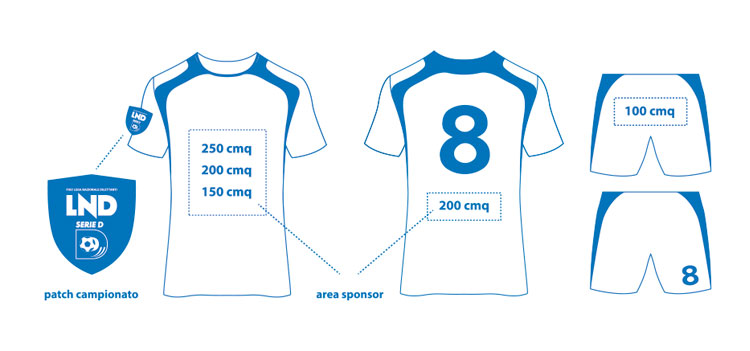 Le società che partecipano al campionato di Serie D hanno l'obbligo di apporre su una delle maniche delle maglie da gara la patch termosaldata SERIE D 2021/2022. Prima dell'inizio dell'attività ufficiale, il Dipartimento Interregionale provvede alla spedizione di un kit di patch per ciascuna società in organico. La patch va applicata con orientamento orizzontale come da esempio. Per quanto attiene gli sponsor le società appartenenti alla Lega Nazionale Dilettanti possono apporre sugli indumenti di gioco non più di 5 marchi pubblicitari, della natura e delle dimensioni così stabilite: