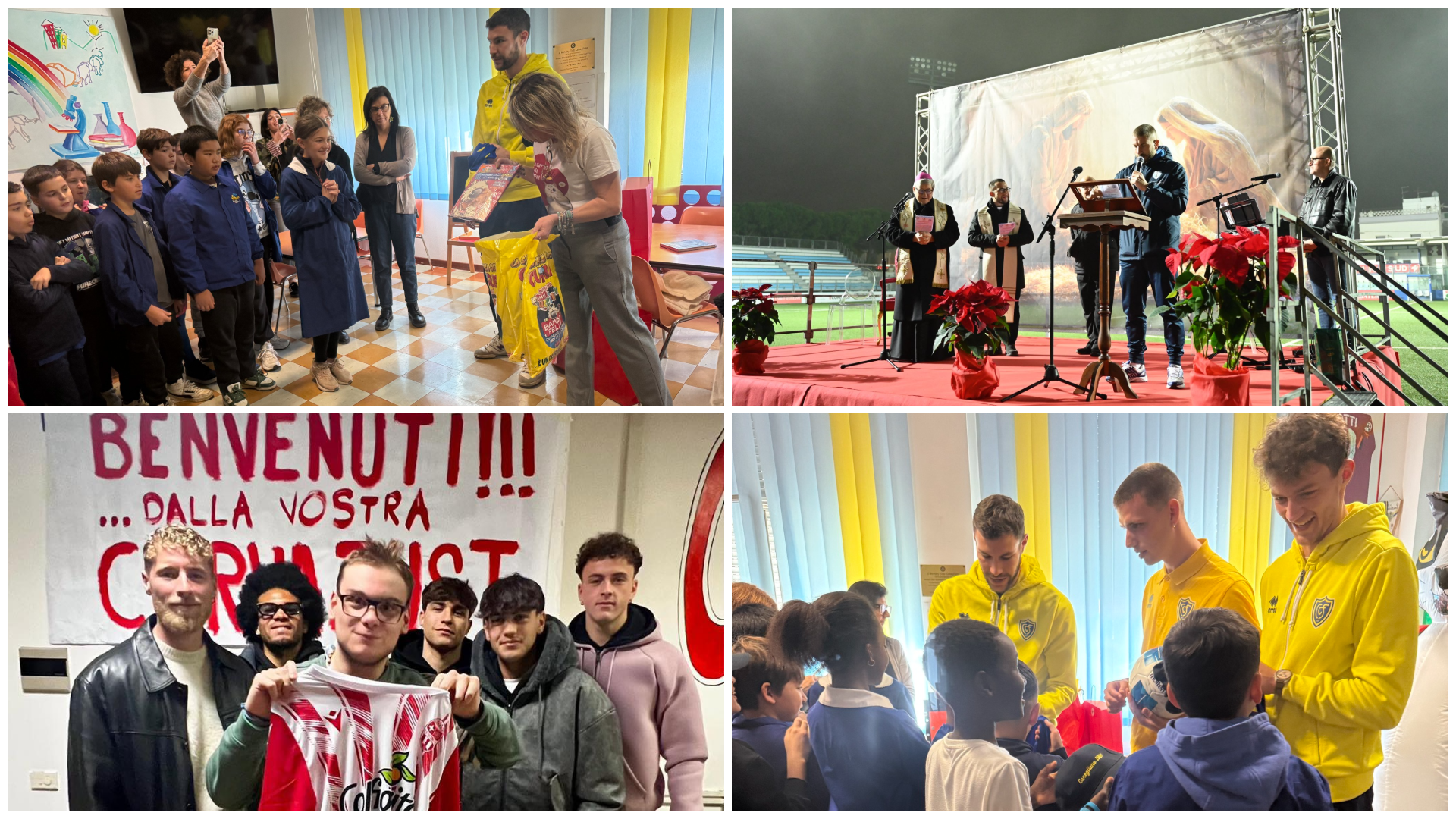 I giocatori del Piacenza in versione “Babbo Natale” hanno consegnato regali e momenti di felicità ai bambini ricoverati nei reparti di Neonatologia e Pediatria dell’Ospedale del centro emiliano. Un’iniziativa organizzata dai tifosi insieme a aziendauslpiacenza e all’associazione William Bottigelli. La Pistoiese ha festeggiato con tutta la filiera del club un “Natale Speciale” grazie alla partecipazione del team “special” orange. La squadra insieme allo staff tecnico e alla dirigenza, ha preso parte all’incontro promosso dalla Fondazione MAIC insieme alle principali realtà sportive del territorio. La Pistoiese ha triplicato l’impegno prendendo parte alla ventisettesima edizione di “Stelle nello Sport, un’asta benefica a sostegno della Fondazione Gigi Ghirotti, da anni impegnata nell’assistenza socio-sanitaria e nelle cure palliative per le persone più bisognose.