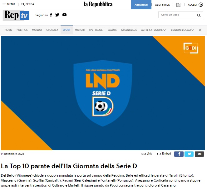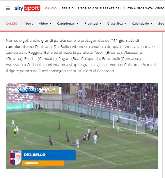 La Top 10 parate dell’11^ Giornata della Serie D