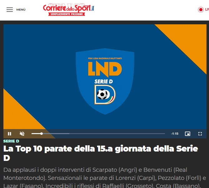Da applausi i doppi interventi di Scarpato (Angri) e Benvenuti (Real Monterotondo). Sensazionali le parate di Lorenzi (Carpi), Pezzolato (Forlì) e Lazar (Fasano). Incredibili i riflessi di Raffaelli (Grosseto), Costa (Bassano), Barberini (Sangiovannese), Valentini (Pistoiese) e Uva (Borgosesia).