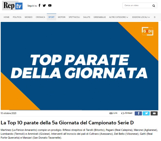 La Top 10 parate della 5^ Giornata del Campionato Serie D