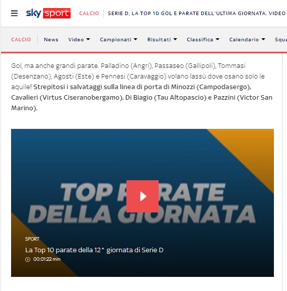 Palladino (Angri), Passaseo (Gallipoli), Tommasi (Desenzano), Agosti (Este) e Pennesi (Caravaggio) volano lassù dove osano solo le aquile! Strepitosi i salvataggi sulla linea di porta di Minozzi (Campodasergo), Cavalieri (Virtus Ciseranobergamo), Di Biagio (Tau Altopascio) e Pazzini (Victor San Marino).
